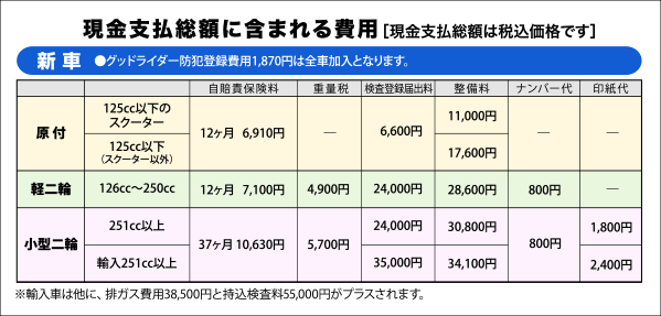 | 車 名 | メーカー希望小売価格 | 現金支払総額 | 納期目安 |